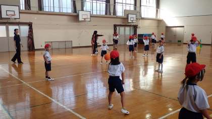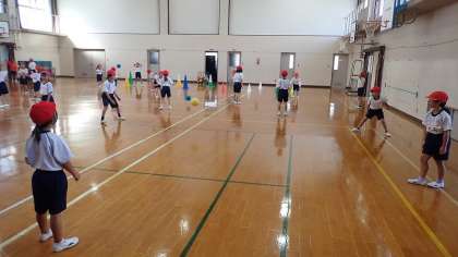 1年生は、体育の「ボール遊び」の学習をしています。