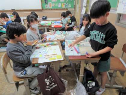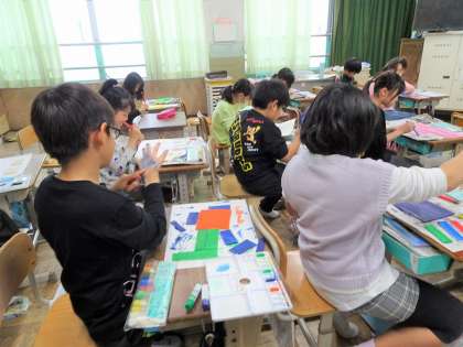 4年生 切ったパーツに色を塗りました