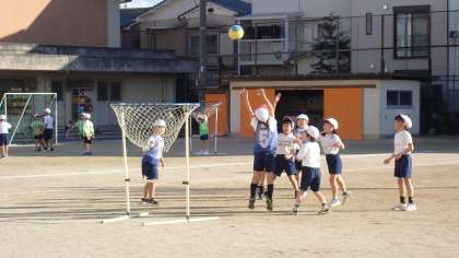 2年生は、体育の「パスゲーム」の学習をしています。
