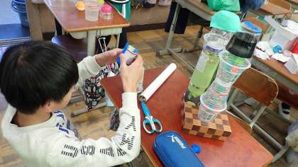 6年生は、図工の「廃材でつくろう」の学習をしています。
