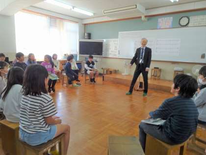 4年生は音楽室での学習が始まりました。11月末からは教頭先生に音楽の授業をしてもらいます。教頭先生は歌がとっても得意なので、口の開け方や声の出し方など、いろいろなコツを聞いてみんなで練習しました。