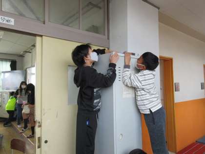 家庭科「物を生かして住みやすく」の学習では、そうじの必要性とよごれに合った掃除の方法について考えています。今日の授業では、教室の普段はあまり掃除のしない場所を中心にぞうきんを使って掃除しました。ぞうきんについたほこりの量に驚いていました。やり始めると、みんな一生懸命教室をきれいにしようと奮闘していました。おかげで、どの教室もピカピカです!