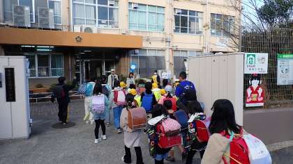 12月になって朝の冷え込みが厳しくなりました。吐く息も白い中、気持ちのよいあいさつの声が響いています。