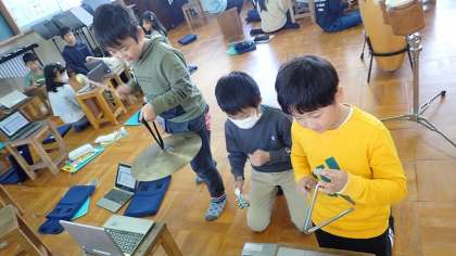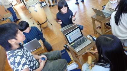 4年生は、音楽の「いろいろな音のひびきを感じ取ろう」の学習をしています。