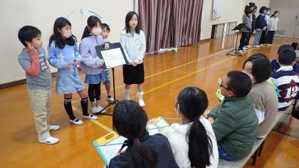 発表を聞きに来てくれたお客さんは、4年生とむくのきのみなさん、そして3年生の保護者の方々です。