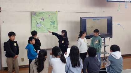 調べたことを言葉で伝えるだけでなく、写真を活用したり、クイズにしたりするなどの工夫があり、お客さんに興味をもって聞いてもらえるような工夫がされていました。