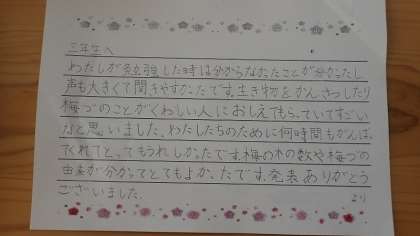 4年生の子どもたちは、3年生の「梅津タイム」についての感想の手紙を書いていました。