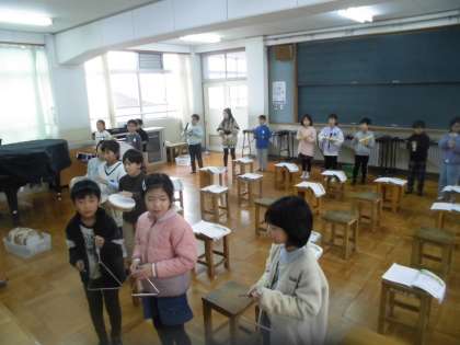 楽器の音色の特徴や全体の音を聴きながらみんなで楽しく演奏することができました。