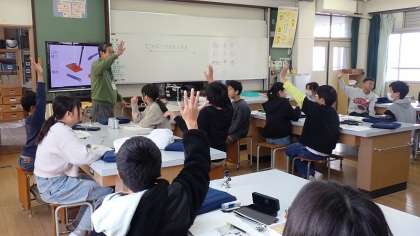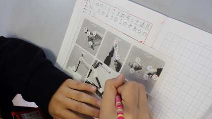 ペンチやくぎ抜き、栓抜きなどの、身の回りにある「てこ」の仕組みが生かされている道具について、どこが「力点」「支点」「作用点」になっているかを考えています。実際に道具を使ったときに、加えた力がどこに働くかをイメージして考えていました。