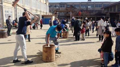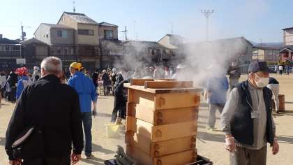 おもちがなくならないように、スタッフの方がもち米を蒸して、どんどんついてくださいます。