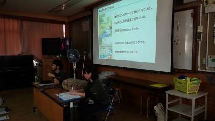 オオサンショウウオの生態について教わった後、このオオサンショウウオがすむ川の環境について考えました。