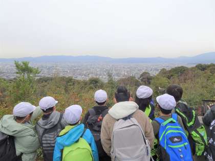 浄水場の見学の後は、将軍塚の展望台で少し休憩・昼食タイムをとりました。展望台からは京都市の街を見渡すことができます。ランドマークの京都タワーを目印に、自分たちの家や学校を探す様子が見られました。