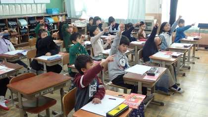 2年生の教室では、新出漢字の書き取りをしていました。