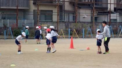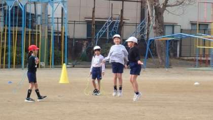 なわの回し方を確かめながら、リズミカルに跳ぶ練習をしています。友達同士で回数を数えたり、アドバイスをしたりしながら楽しく学習をしていました。