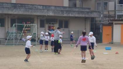 2年生は、体育の「なわとび」の学習をしています。