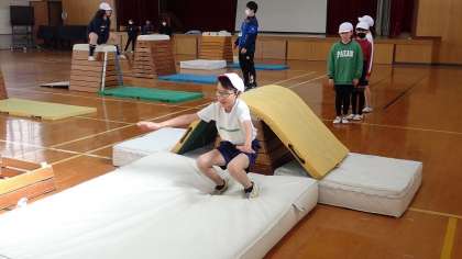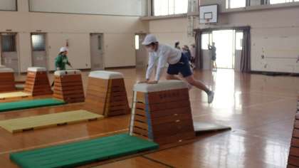 5年生は、体育の「とび箱運動」の学習をしています。