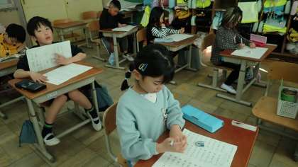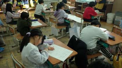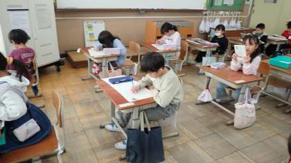 この時期、4〜6年生はジョイントプログラムやプレジョイントプログラムに取り組んでいますが、1年生は「うめづチャレンジ」を行いました。国語と算数の2教科のテストに真剣に取り組んでいました。