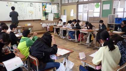 5年生は、道徳の「ヘレンと共に−アニー・サリバン」のお話を読み、ヘレンを抱きしめたアニーの思いを考えることを通して、あきらめないことの大切さを知り、困難があってもくじけずに努力して物事をやり抜こうとすることの大切さについて考えました。