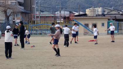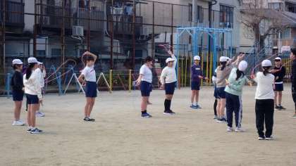 先生から、何やら難しそうな縄の回し方を教わっています。はじめはぎこちない回し方でしたが、慣れてくるとスムーズに縄を回すことができるようになってきました。