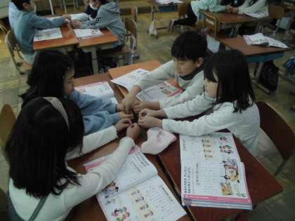 調べてみると地域によってさまざまな歌い方や遊び方があることが分かりました。他のわらべうたにも興味をもち、もっともっと遊んでみたくなったようです。