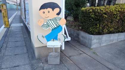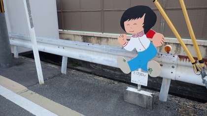 今回、管理用務員さんが新たに「飛び出し坊や」と「飛び出し嬢ちゃん」(?)をつくってくださいました。2人は西門と少し下がったところの丁字路で子どもたちの安全を見守っています。