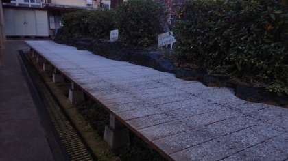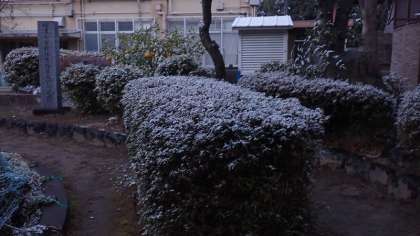 梅津小学校の中庭にも、うっすらと雪がかぶっています。