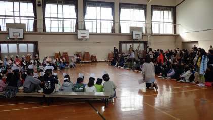 寒い体育館での発表でしたが、発表した1年生と、お客さんの2年生と保護者のみなさんの心がポッとあたたかくなるすてきな「うめづタイム」でした。