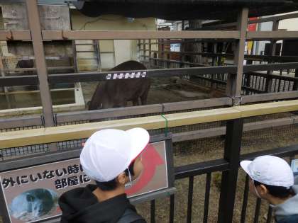 「小さな巨匠展」の作品鑑賞をした後は、京都市動物園に行きました。昼過ぎでも、風が冷たく冷え込んでいましたが、ちょうどいろいろな動物の食事の時間が見られて子どもたちも喜んでいました。