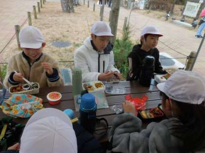 その後、寒さに耐えながら、お弁当を食べました。お忙しい中お弁当のご用意をしていただき、ありがとうございました。
