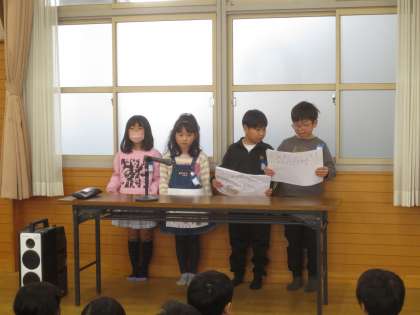聞いて分かったことを紙芝居のようにして、クイズもはさみながら、楽しく発表することができました。