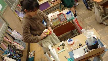 2年生は、図工の「ともだちハウス」の作品づくりをしています。