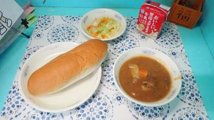 今日は、牛肉たっぷりの「ビーフシチュー」です。給食のシチューでは、給食調理員さんがルーから手作りで作ってくださっており、今日は、小麦粉とバターを香ばしくいためて作った「ブラウンルー」が使われています。コクがたっぷりのルーと、やわらかい牛肉、ほくほくのじゃがいもなどを味わって、おいしくいただきました。
