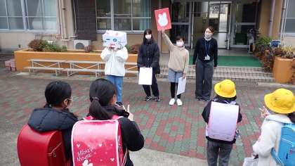 今日は、毎月15日の「いいことばの日」でした。梅津中学校からも先輩が来てくれ、計画委員会の子どもたちと一緒に、登校する子どもたちに「今日はいいことばの日です。」「いいことばを使いましょう」と声掛けをしてくれました。たくさんの「いいことば」が使えたでしょうか?
