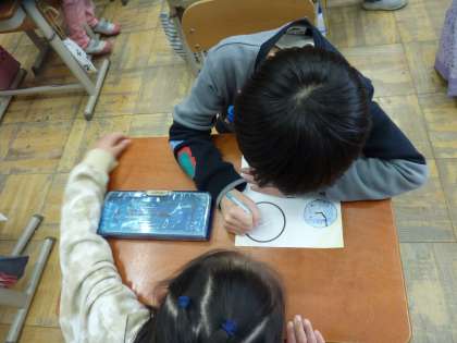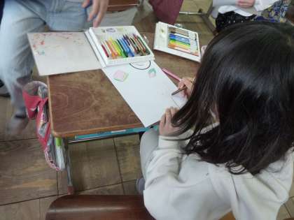 「給食調理員さんに感謝の気持ちを伝えるカルタってどんなんかなぁ。」「おいしさが分かるようなカルタがいいなぁ。」と、クラスでいろいろ考えました。全学年で取り組み、給食室の前に掲示されます。どんなカルタができあがるのか、とても楽しみです。