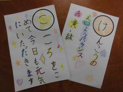 13日(火)〜22日(木)は、給食週間です。それぞれのクラスで給食カルタを作りました。