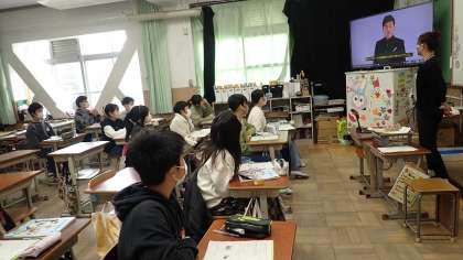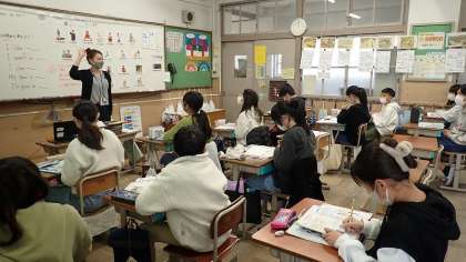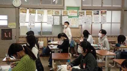 今日は、Unitのまとめとして、動画を視聴しています。動画の中の人物が話す英語を聴き取り、どんなことを話しているかをつかもうとしています。すべてを聴き取ることは難しいですが、聴き取ることのできた単語を頼りに、話の大体を理解することができていました。