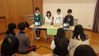 それぞれが調べたことをプレゼンにまとめて発表しました。クイズを交えて関心をもってもらえるような工夫をしているグループもありました。