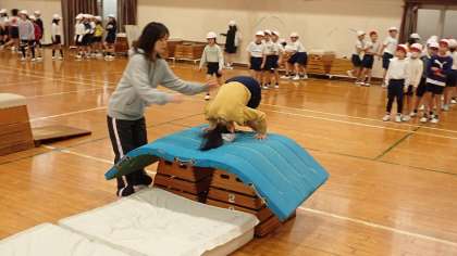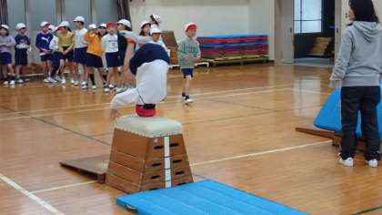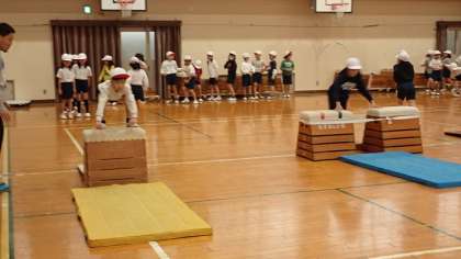 2年生は、体育の「とびばこあそび」の学習をしています。