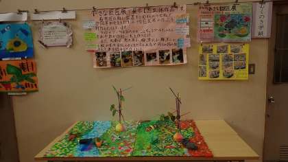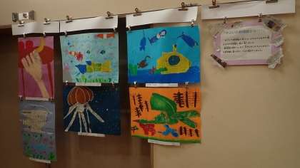 むくのき学級の子どもたちの作品(上・中)と梅津北小学校、梅津中学校、西総合支援学校の子どもたちの作品です。