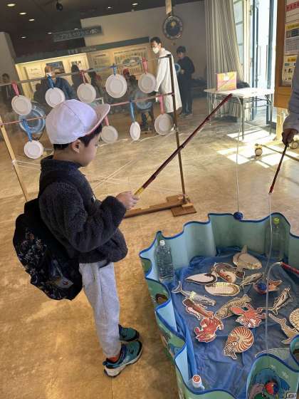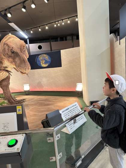 1年生は、4年生以上が工作教室の間、展示室を色々と回りました。貝の展示を見ていると、「あの貝、面白い。一番好き。」とホネガイを指さして、教えてくれました。チクチクしているところが面白かったようです。