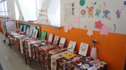 6年生の教室前の廊下に、「うめのこ」さんの特設コーナーが設置されています。
