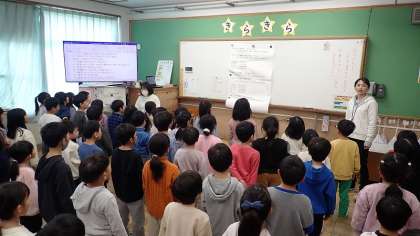 1年生は、6年生を送る会に向けた練習をしています。