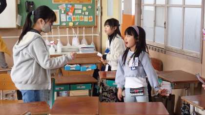 たくさんのお店を回って、たてわりのなかよしグループのみんなと一緒に過ごす時間を楽しむことができたようです。準備から今日の本番まで、6年生を中心にしてみんなよくがんばったと思います。もうすぐ今年度も終わってしまいますが、1年の終わりに良い思い出ができましたね。