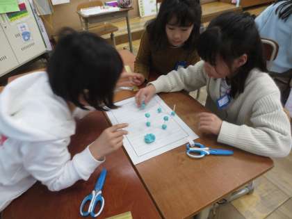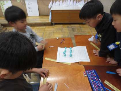 そして、ストローと粘土玉を使って、箱の形を作ることにチャレンジしました。