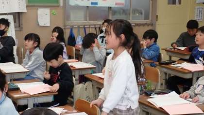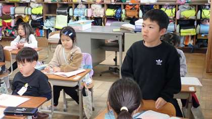 先生がお話を読むのを静かに聞きながら、本文を目で読んでいます。お話を聞いた後は、感想を交流しました。死んでしまった「エルフ」のことがかわいそうだという感想を話してくれる子がたくさんいました。お話を読んでいくうちに感想はどんな風に変わっていくでしょう。
