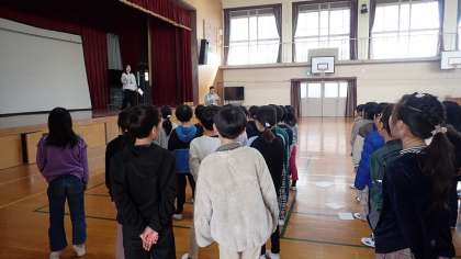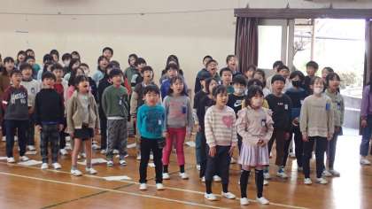 2年生は、6年生を送る会に向けた練習をしています。