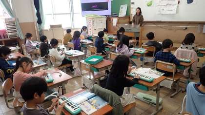 指づかいとタンギングに気を付けながら、鍵盤ハーモニカの演奏を楽しんでいました。