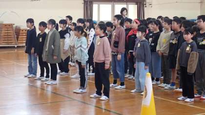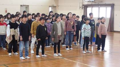3年生は、お世話になった6年生に、感謝の気持ちを込めて歌を贈ります。6年生に喜んでもらえるように、響きのある声で歌っています。