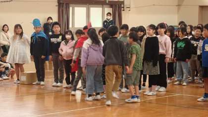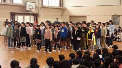 3年生は、6年生にお世話になったことを短いお芝居にして感謝を伝えました。重いものを運んでいたとき、集団登校で登校するとき、休み時間に一緒に遊んでもらったとき、いつも6年生が支えてくれました。