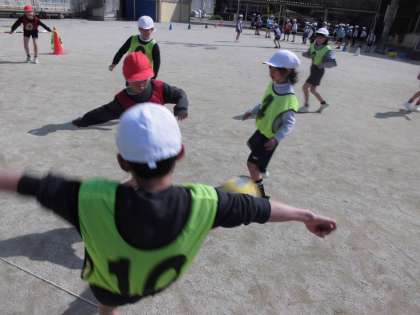 体育科「ボールけりあそび」の学習では、リーグ戦の結果からチャンピオンシップトーナメントを開催しました。